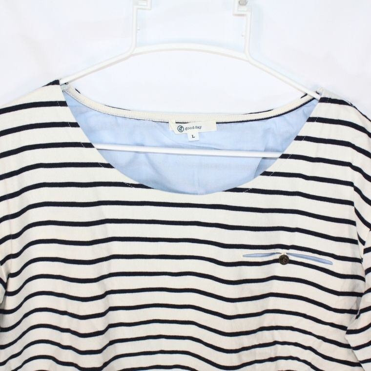 good day ボーダー 半袖カットソー L レディース 綿100 ポケット付