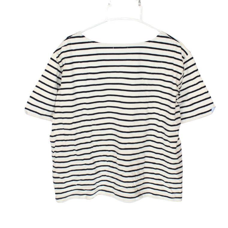 ベーシックなネイビー×ホワイトの配色で、カジュアルコーデに取り入れやすいアイテムです。