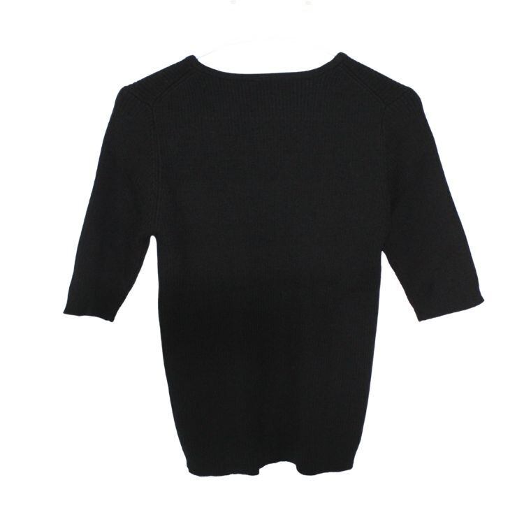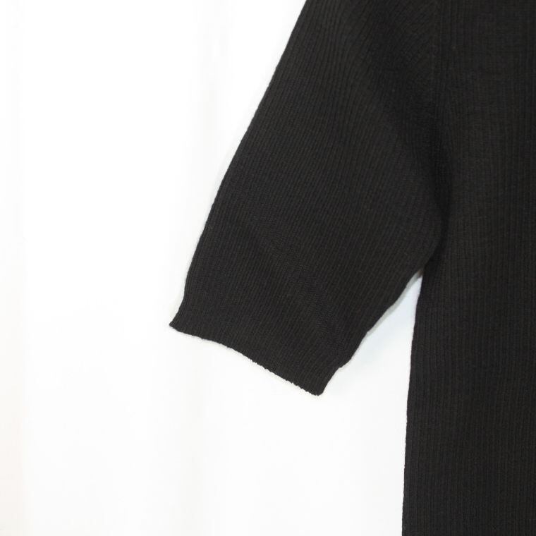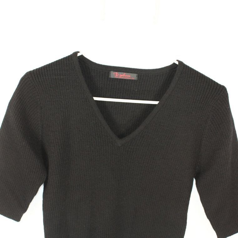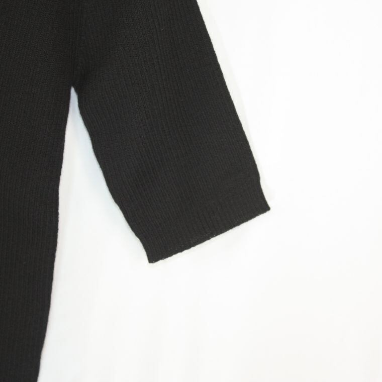 Dynamic ニット Vネック 黒 ウール100% 五分袖 シンプル レディース