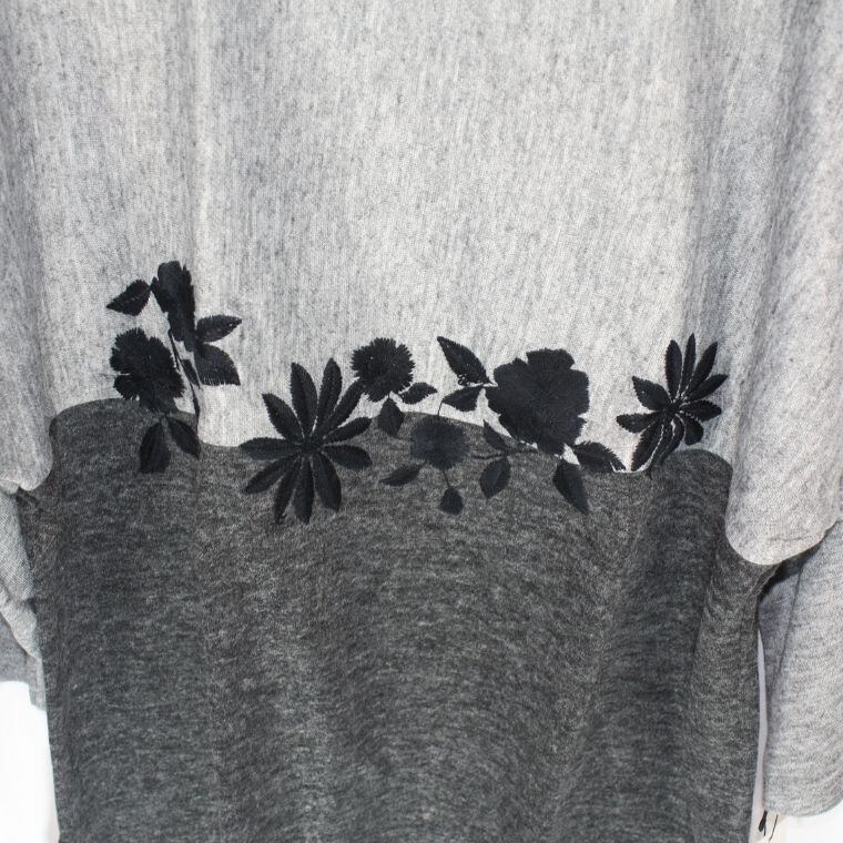 グレー×ブラックの切替デザインに花柄が施されたデザイン性のある一着。