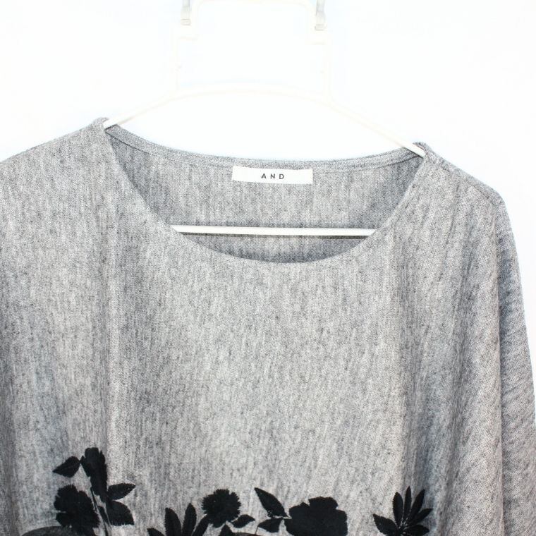 AND 花柄切替カットソー グレー 大きいサイズ L~4L対応 ゆったり