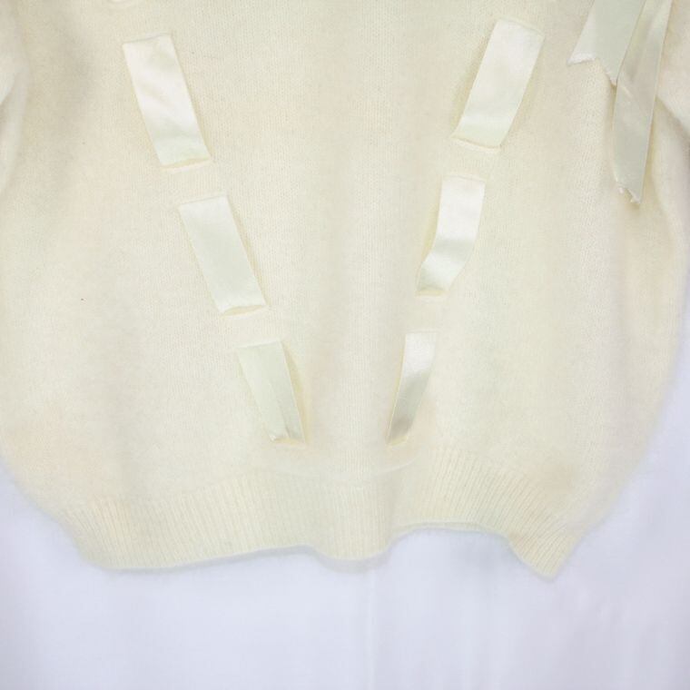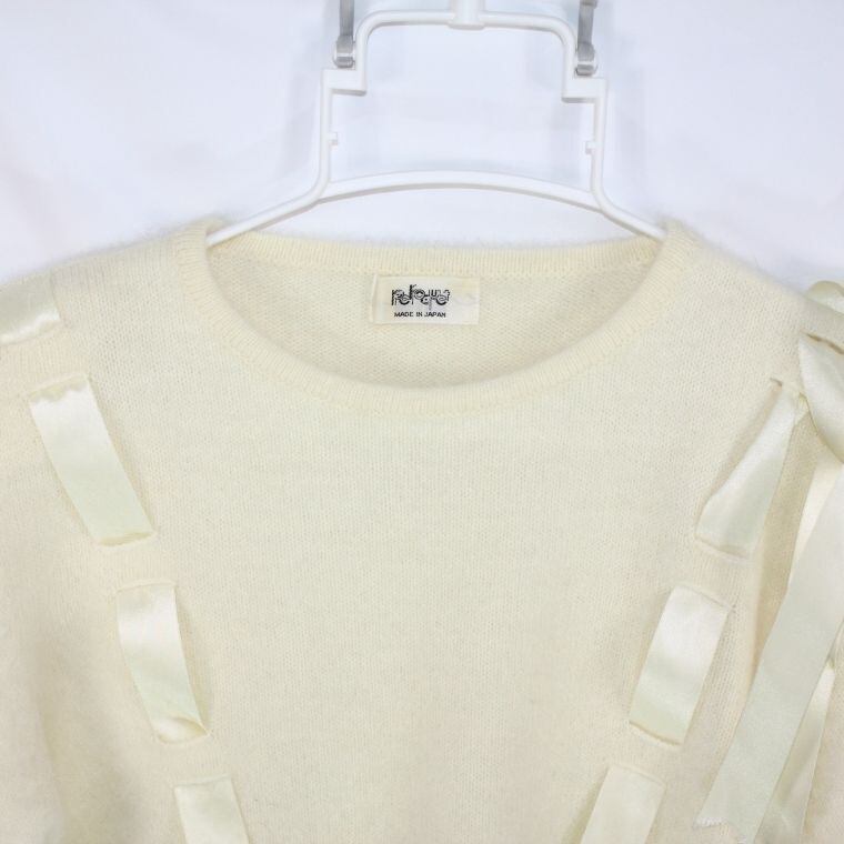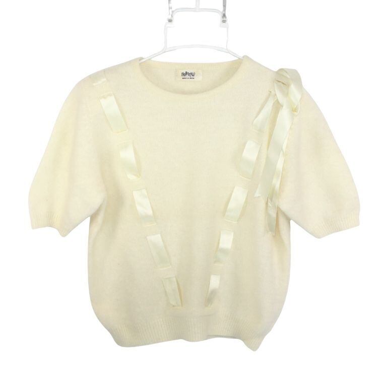 Pelpet 半袖 ニット セーター リボンデザイン 白 日本製 ウール